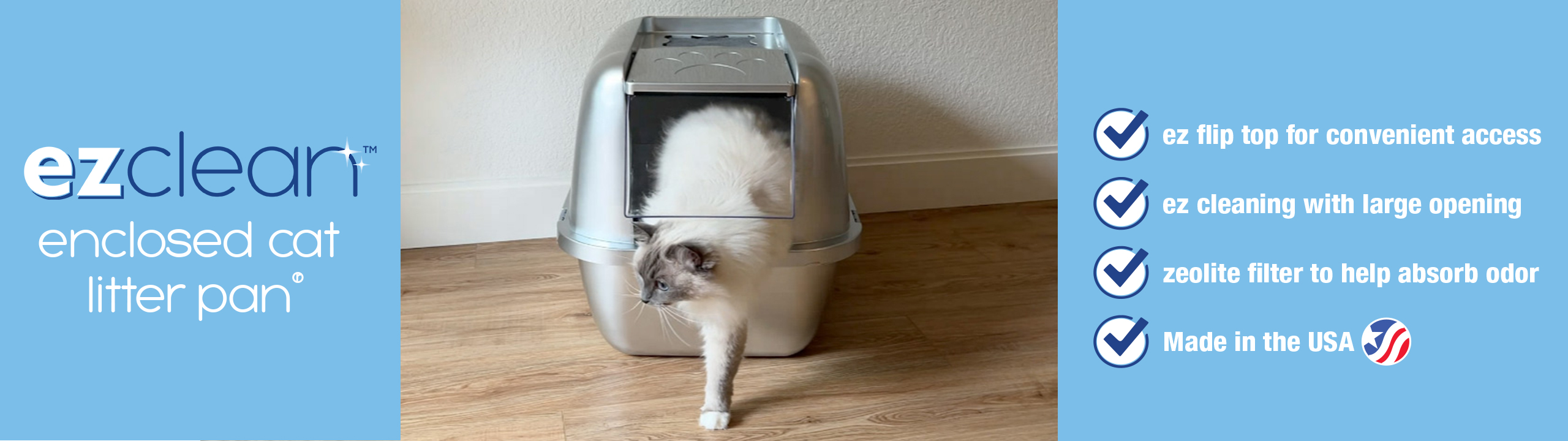 Made in the USA from pet-safe, odor and stain resistant materials, the EZ Clean Enclosed Cat Litter Pan is designed for long-lasting use.